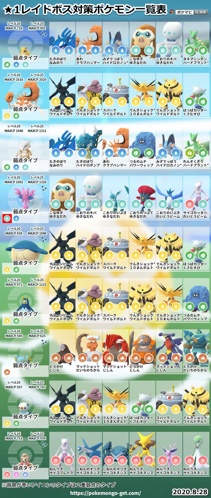 ポケモンgo攻略情報 ポケマピ 8 28 金 レイドボス対策ポケモン一覧を更新しました メガレイドでは ゲットチャレンジ対象の通常のフシギバナ リザードン カメックスは色違いの可能性があります 画像はお気軽に保存 シェアしてください